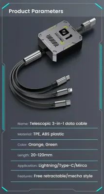 Cabo 3em1 retrátil