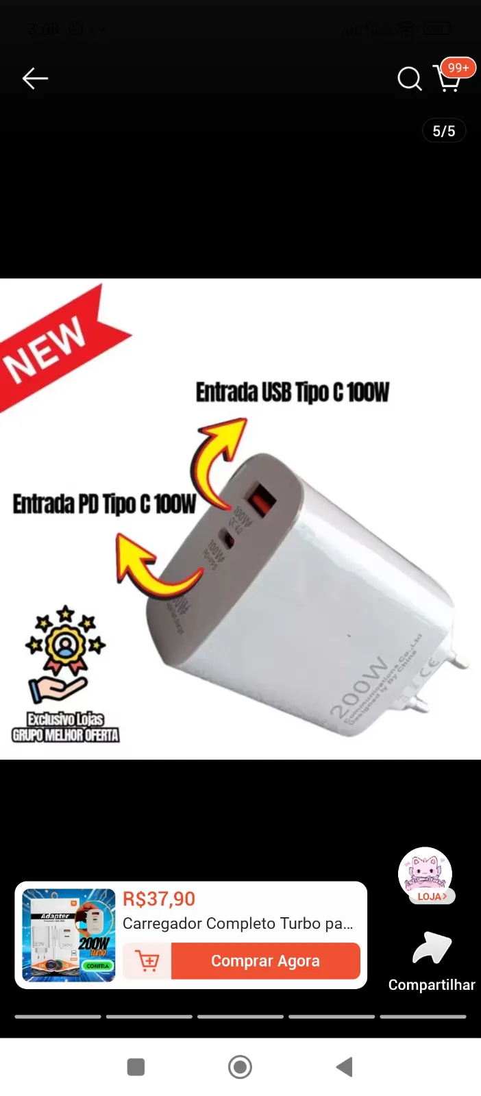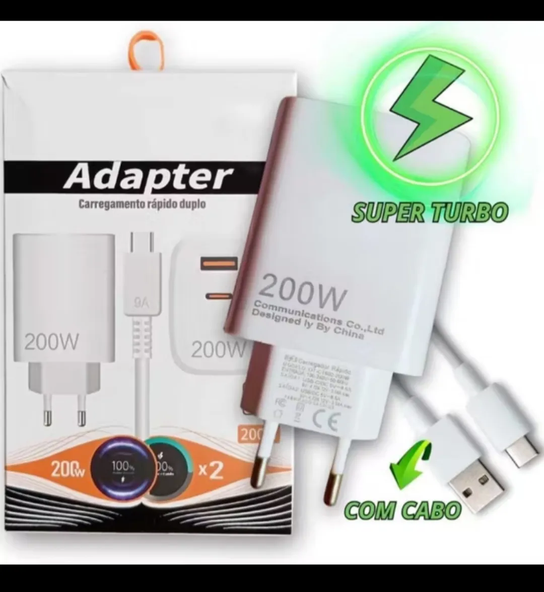 Desfrute de carregamento rápido e seguro com o Carregador 200W Top, projetado para oferecer alta performance e proteger seus aparelhos contra sobrecargas. Ideal para quem busca praticidade e velocidade no dia a dia.