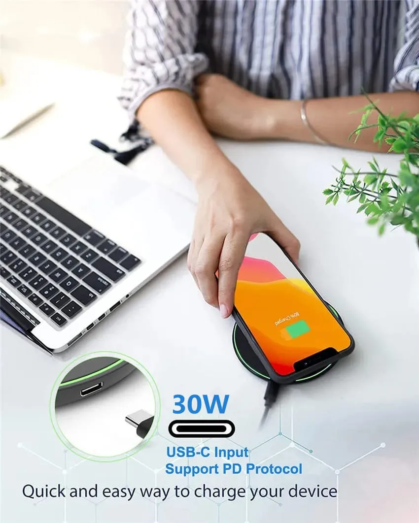 Carregador por indução: a solução prática para manter seus dispositivos sempre carregados! Experimente a conveniência de carregar seu smartphone ou tablet sem fios. Este carregador por indução combina design elegante e eficiência, proporcionando uma experiência de carregamento rápida e segura. Ideal para uso em casa, no escritório ou enquanto viaja, ele elimina a confusão de cabos e facilita o acesso ao seu dispositivo. Adquira o seu hoje mesmo e descubra a liberdade do carregamento sem fio! Potência de saída: ---- Compatível com dispositivos Qi: Sim Tensão de entrada: ---- Dimensões: ---- Material: ----