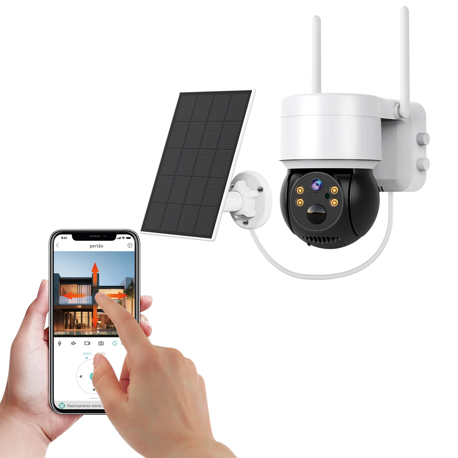 Monitoramento 24/7 com recarga solar, instalação simplificada e acesso remoto pelo celular para segurança contínua.